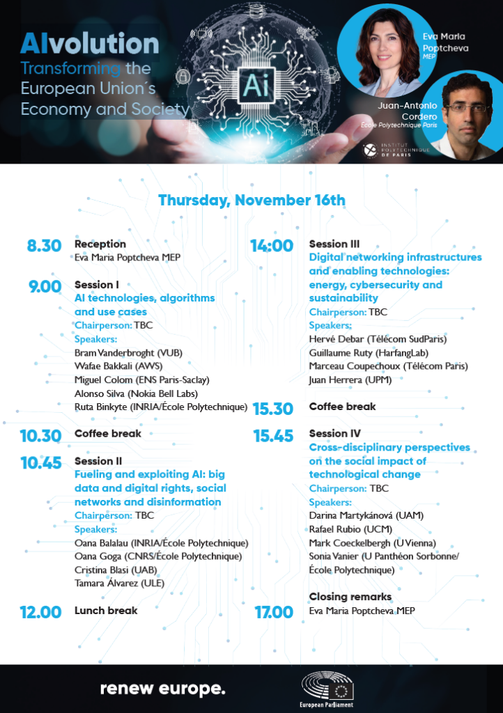 That is why Juan-Antonio Cordero of École Polytechnique and Eva Maria Poptcheva MEP are organising the conference “AIvolution: Transforming the European Union’s Economy and Society”, which will take place in the European Parliament on 16 November 2023. The aim is to present the key trends in automation and digitalisation, as well as discuss their societal implications, their impact on democracy and the need for regulation in the European Union. The organisers also seek to have the conclusions serve as a guide for European legislators. Speakers include academics from different European universities and the private sector who are driving the AI revolution or studying it closely.