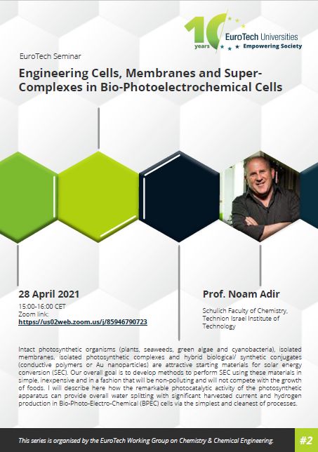 The newly established EuroTech Working Group on Chemistry and Chemical Engineering is launching a biweekly online seminar series: Every other Wednesday, the group is offering a one-hour talk open to all. Join us on 28 April for the second talk: