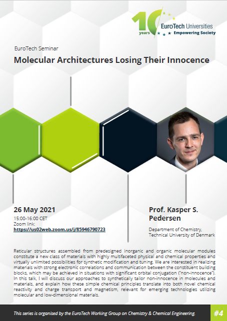 The newly established EuroTech Working Group on Chemistry and Chemical Engineering is launching a biweekly online seminar series: Every other Wednesday, the group is offering a one-hour talk open to all. Join us on 26 May for the fourth talk: