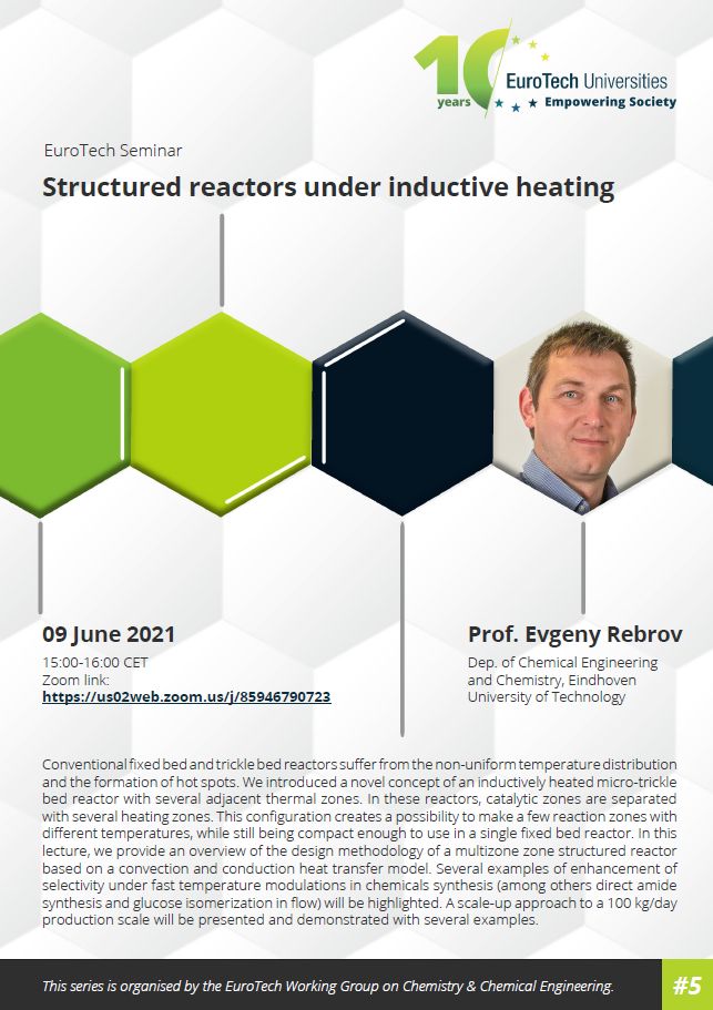 The newly established EuroTech Working Group on Chemistry and Chemical Engineering is launching a biweekly online seminar series: Every other Wednesday, the group is offering a one-hour talk open to all. Join us on 9 June for the fifth talk: