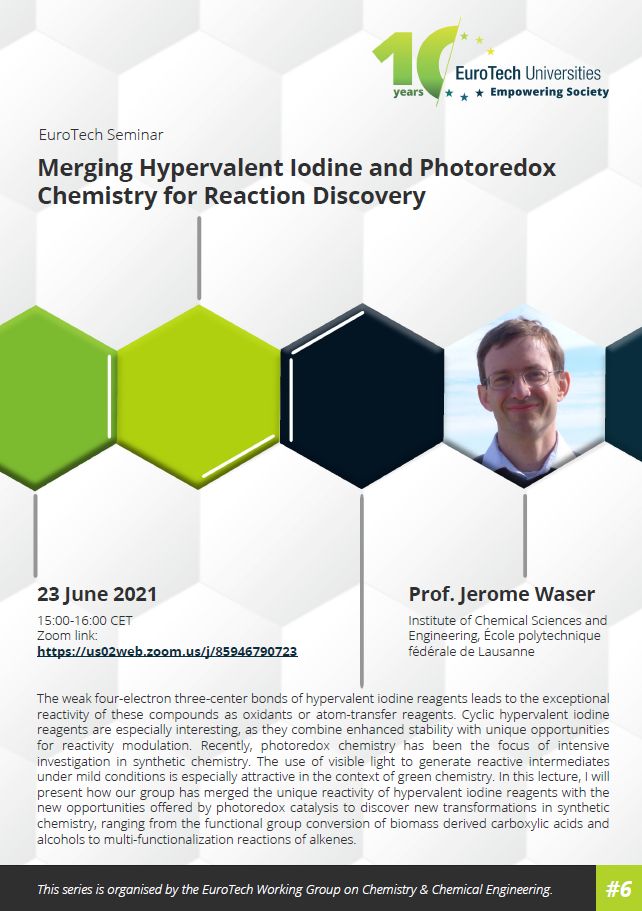 The newly established EuroTech Working Group on Chemistry and Chemical Engineering is launching a biweekly online seminar series: Every other Wednesday, the group is offering a one-hour talk open to all. Join us on 23 June for the sixth talk: