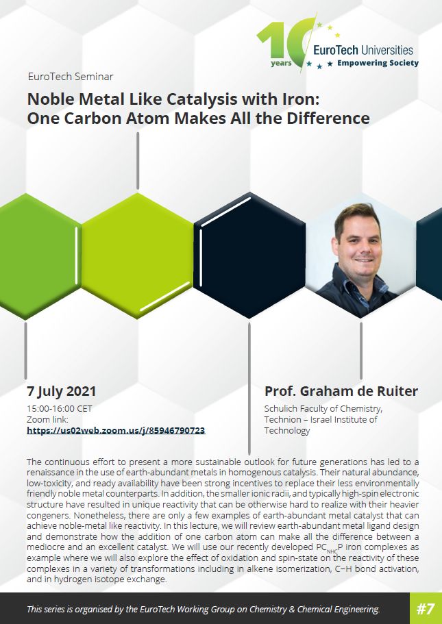 The newly established EuroTech Working Group on Chemistry and Chemical Engineering is launching a biweekly online seminar series: Every other Wednesday, the group is offering a one-hour talk open to all. Join us on 7 July for the seventh talk: