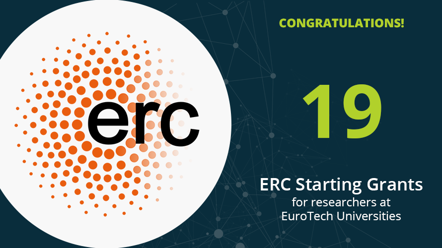 6 September 2023 | Congratulations to 19 young researchers affiliated with EuroTech Universities who were awarded an ERC Starting Grant yesterday! Out of those 19 laureates, 11 are women, a higher share than the overall share of female researchers funded in this round (43%). All EuroTech Universities were successful (due to the non-association of Switzerland to Horizon Europe, EPFL-affiliated researchers were not eligible for funding).