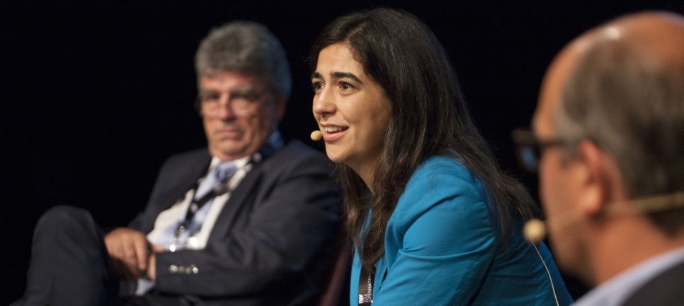 The four panellists of the session – Johannes Heinlein, Senior Director of Strategic Partnerships at edX, Ana Carla Pereira, Head of Unit for Skills and Qualifications Strategies, DG Education and Culture at the European Commission, Patrick Aebischer, President of EPFL and Volker Zimmermann, Member of the Board of IMC AG – contributed to a thought provoking discussion by bringing different perspectives from the point of view of business, policy and universities.