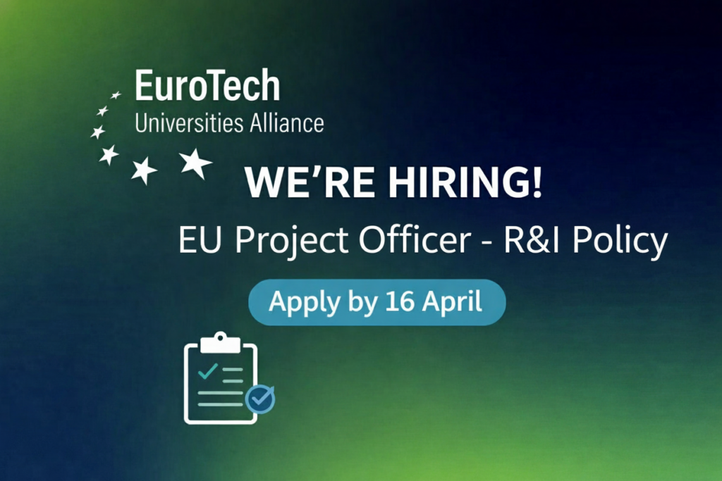 23 March 2026 | We are looking for a committed and enthusiastic EU project officer on Research & Innovation (R&I) policy to join our Brussels’ team. The successful candidate will lead the implementation of EuroTech’s EU-funded projects and contribute to the implementation of the Alliance’s Strategy 2030. This is an exciting opportunity for someone with strong policy research experience and a passion for research and innovation to make a real impact across Europe.